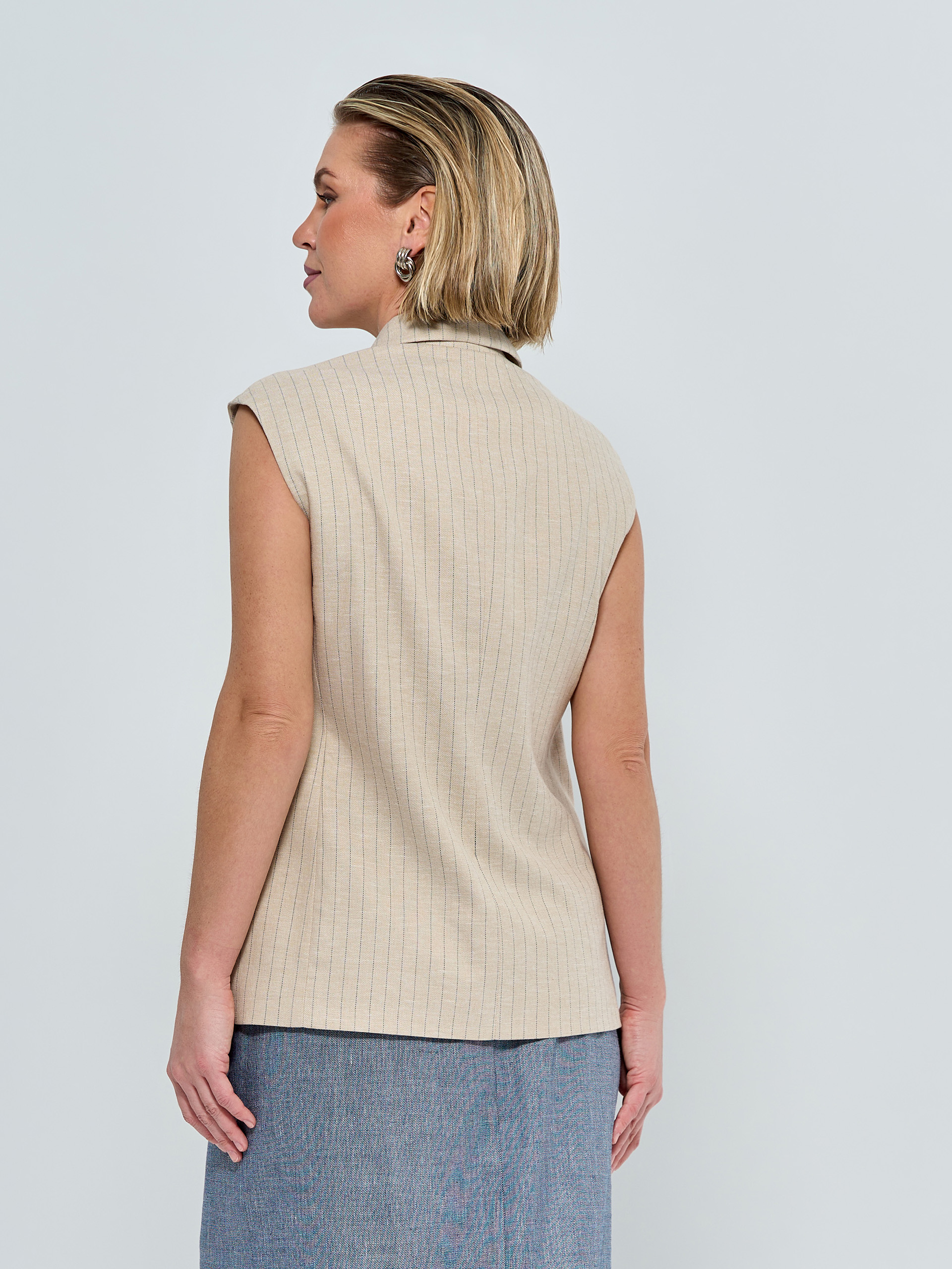 Приталенный льняной жилет в деликатную полоску