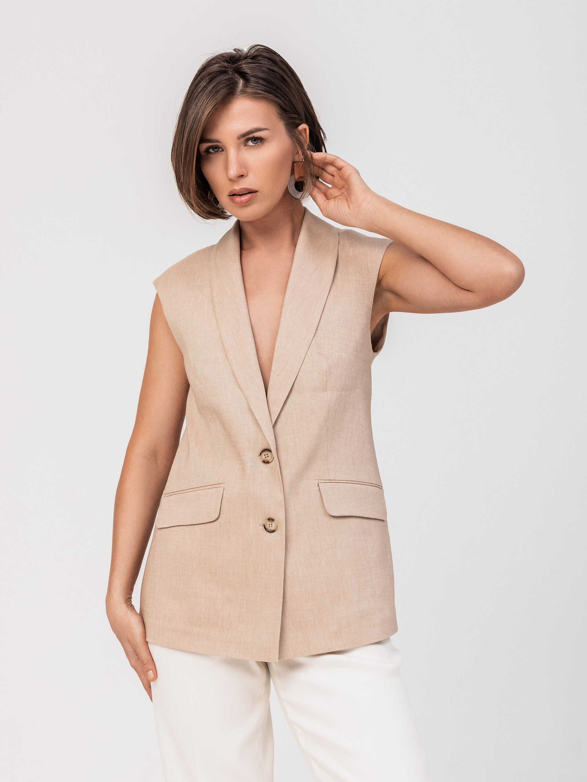 Состав: лен 53% полиэстер 29% вискоза 16% эластан 2%подклад:вискоза 59% район 41%